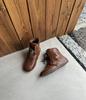 Höhenvergrößernde Boxstiefel Damen modische Schnürung runde Zehenpartie Plateau Maillardbraun Retro-Riemen mittelhohe Schaftweite kurze Stiefel
