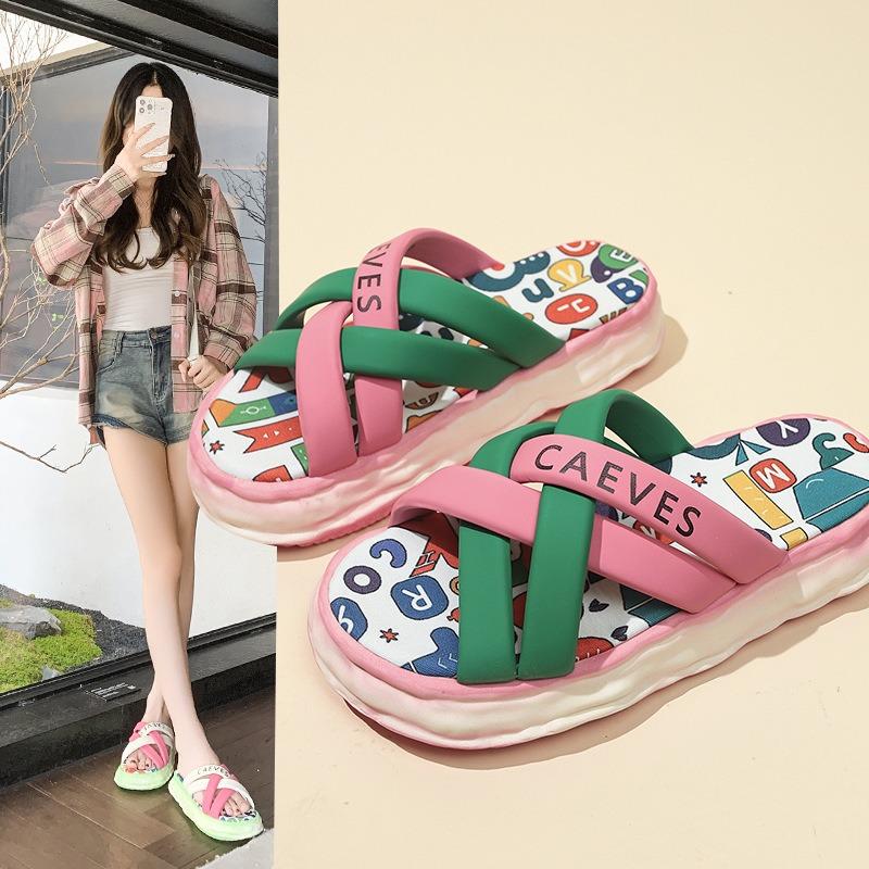 Dicke Sohle coole Hausschuhe Damen Sommer neu Cross-Wear Graffiti Übergröße Strandsandalen