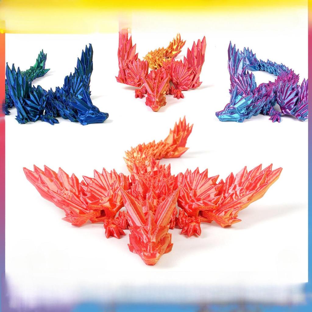 3D Printed Movable Crystal Wyvern Dinosaur Figurines with Dragon Egg Toy