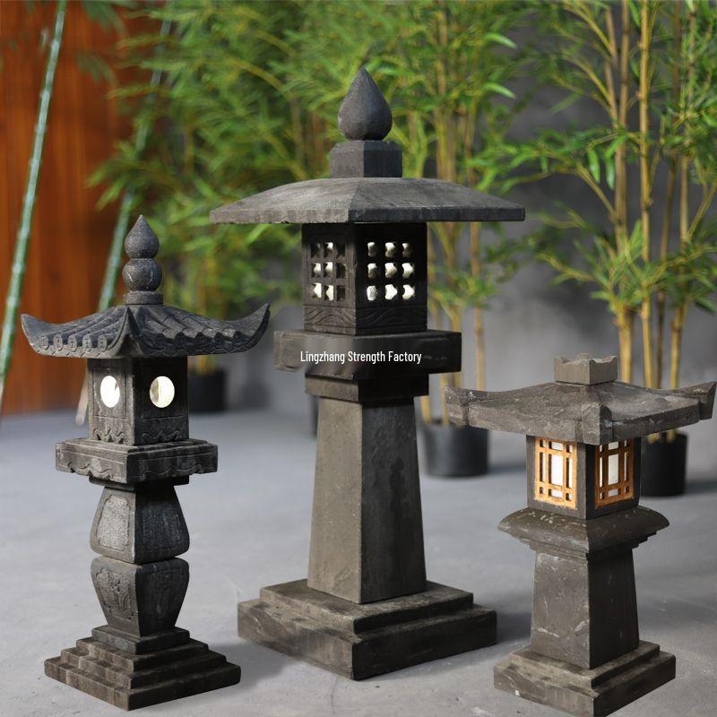 Antique Bluestone Courtyard Lantern: Outdoor Landscape Stone Lamp in New Chinese Style