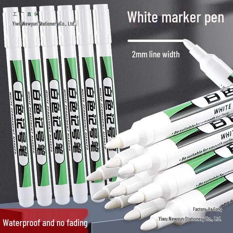 White Waterproof Quick-Dry Oil-Based Tire Marker Pen, Fade-Resistant Fine and Broad Points for Labeling.