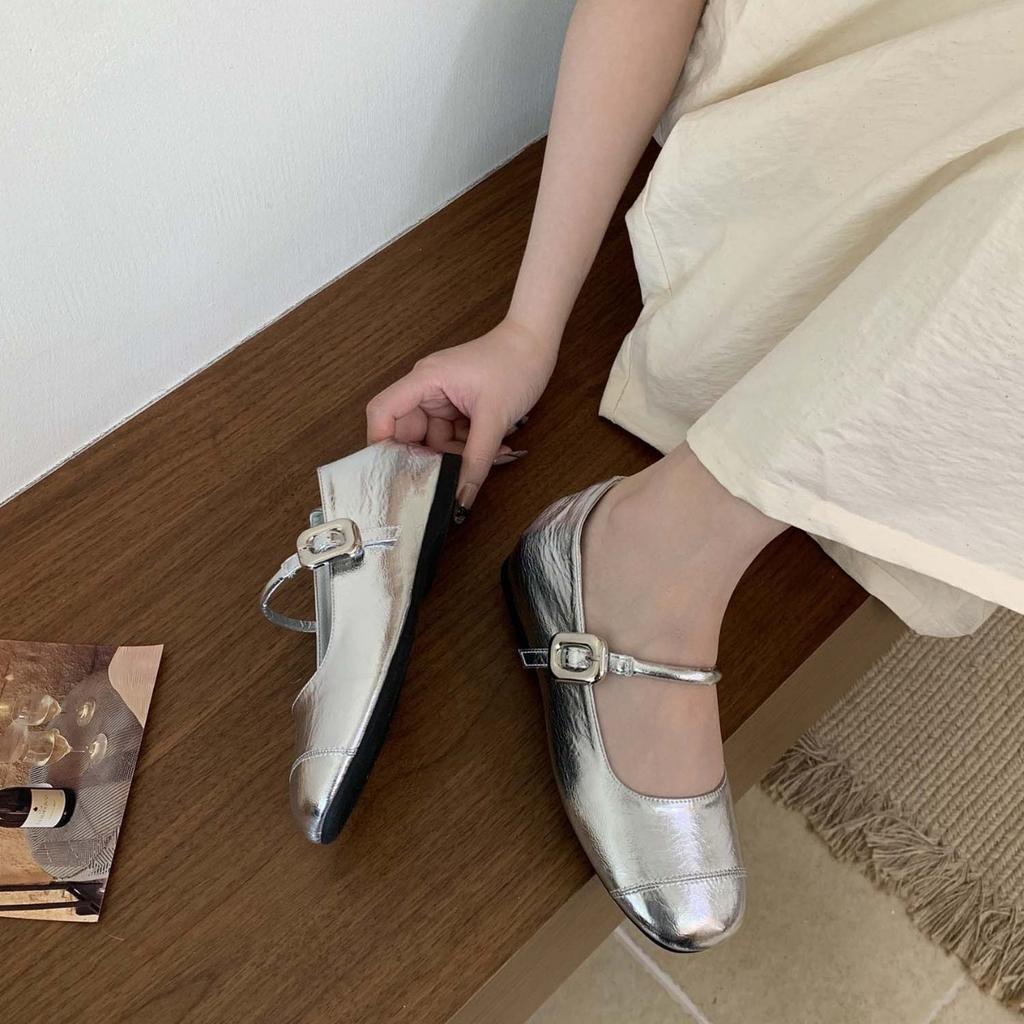 Retro Mary Jane Schuhe 2025 neu Französischer kleiner Duftstil elegant eckige Spitze flacher Ausschnitt Innenhöhenerhöhung Ein-Wort-Riemen Einzelne Schuhe