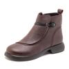 Mom shoes cotton shoes women's soft soles autumn and winter middle-aged short boots flat leather shoes velvet warm non-slip middle-aged and elderly w