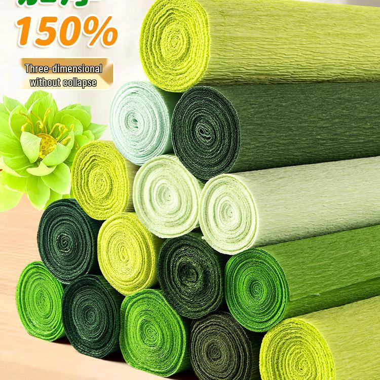 Packung dickes grünes Krepppapier für handgefertigte 3D-Blumen, ideal für Bastelarbeiten in Grundschule und Kindergarten