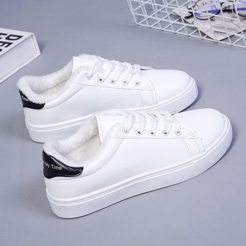 Fleece Baumwollschuhe Damen weiße Schuhe 2025 neu Winter Student Koreanische Version vielseitige flache Freizeitschuhe warm Board Schuhe Damen
