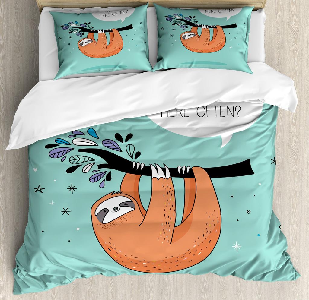 Kids Cute Sloth Duvet Cover Set Cartoon Sloth Printed Comforter Covers Boys Girls 3D Animal Themed Lovely Duvet Cover 2/3 Pcs