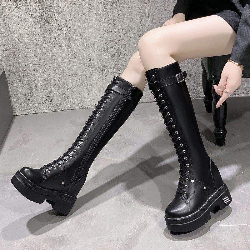 Damenstiefel mit dicker Sohle, Damen 2025 neue lange Ritterstiefel, aber die Kniehöhe nimmt zu. Die langen Stiefel sind dünn, Frühling und Herbst kleine Männer