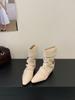 Hohe Version 2025 neu retro Nische spitzes Design spitze Stiefel Stiefeletten flache Sohle mittelhohe Stiefel Damen
