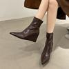 Spitze Stiefeletten Damen neue Stiefel 2025 Herbst und Winter neue europäische schöne Damenstiefel High Heel Stiefeletten Keilabsatz dünne Stiefel