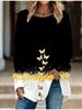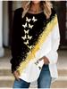 Übergröße Damen Frühling Schmetterlingsdruck Bequemes Langarm Rundhals T-Shirt Lässig Weit Mittelang Tops