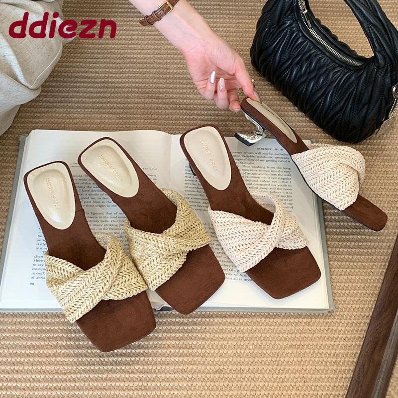 Mode 2025 Neue Damen Pantoletten mit ausgefallenem Absatz Slides Damen Flaches Schuhwerk Mode Eckige Zehenpartie Damen Pantoletten mit Absatz Sandalen Schuhe
