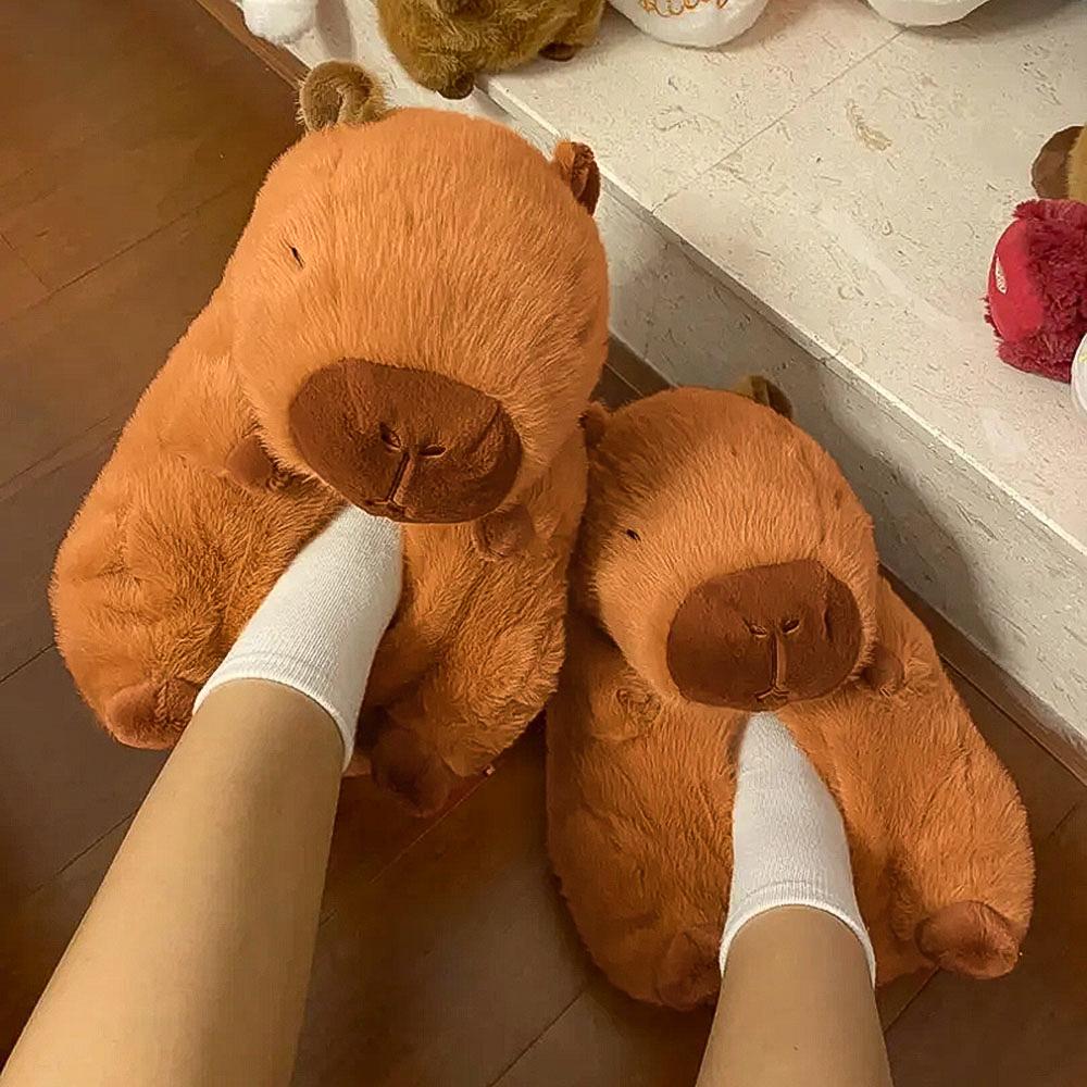 Mode Unisex Cartoon Wasserschwein Hausschuhe Damen Plüsch Niedliche Hausschuhe Winter Warm Zuhause Boden Geräuschlos Weiche Baumwollschuhe Niedliche Wasserschwein Pantoletten
