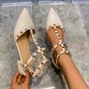 Mode 2025 Knöchelriemen Cut-Out Nieten Rockstud Lackleder Nieten Ballerinas T-Riemen Schnalle Walking Weich Damen Schuhe Reisegröße