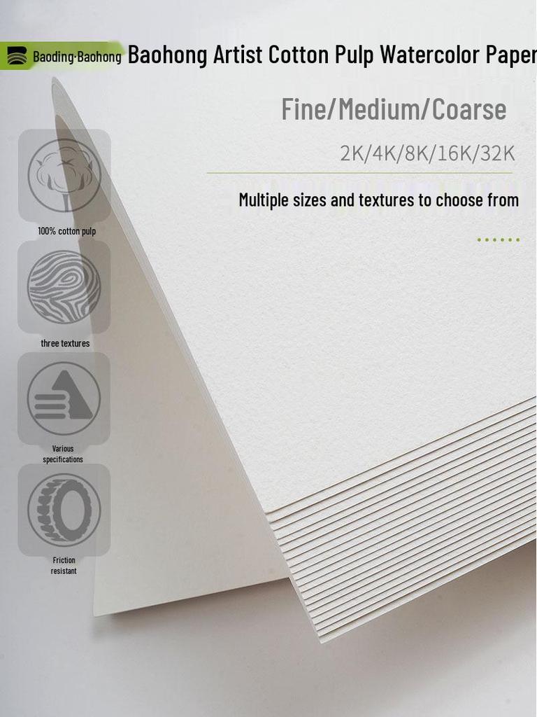 Artist Watercolor Cotton Paper - 32K/16K/8K/4K/2K, Rough/Medium/Fine Grain, 300gsm