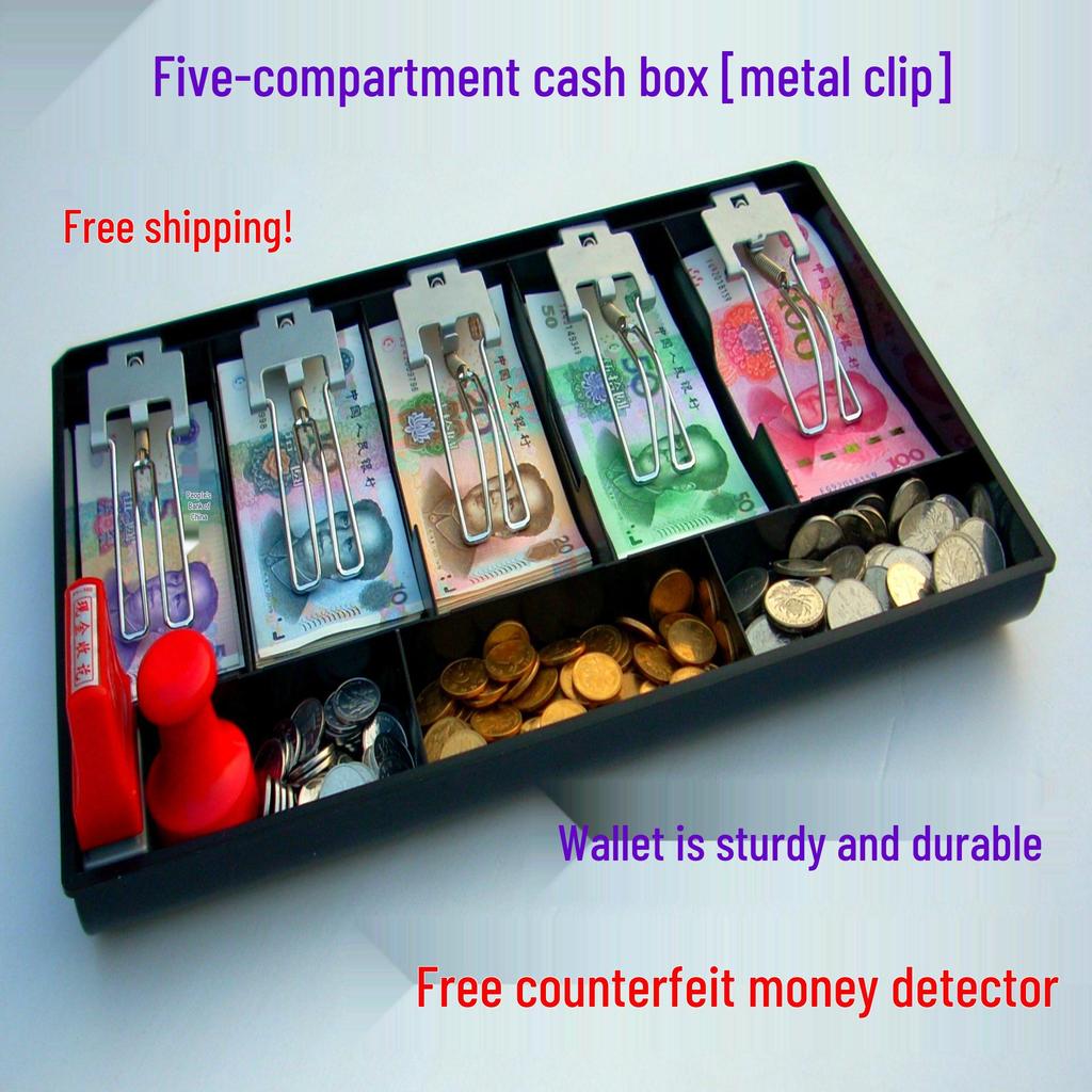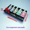 Kassenschublade mit fünf Fächern und Metallklammern