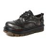 Erleben Sie zeitlosen Stil und modernen Komfort mit diesen Herren-Derbyschuhen aus Leder. Gefertigt aus hochwertigem Rindsleder, verfügen sie über eine markante runde Spitze und eine dicke Sohle, die einen dezenten Höhengewinn bietet.. Der niedrig geschnittene Martin-Stil bietet einen klassischen, aber vielseitigen Look, perfekt für verschiedene Anlässe.. Die Schuhe verfügen außerdem über eine bequeme Innensohle aus strapazierfähigem Polyurethan, die ganztägigen Halt gewährleistet.. Diese Derby-Schuhe sind in großen Größen erhältlich und eine ideale Wahl für alle, die eine Mischung aus Retro-Flair und zeitgemäßer Funktionalität suchen.