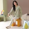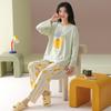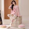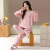 Damen Cartoon Langarm Baumwollpyjama - Koreanischer Stil, Lässig, Lockere Passform für Frühling & Herbst