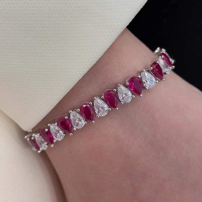 Hochwertiges zweifarbiges S925 Sterling Silber Tropfen Zirkon & Zucht Rubin Armband