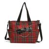 This large-capacity fashion tote bag features a street-inspired plaid design with decorative stitching and chain accents, crafted from durable PU material. Measuring 42*28*15cm high, it offers ample space for daily essentials. Ideal for commuting and casual outings, it includes a zippered closure, internal pockets for phones and documents, and three shoulder straps for versatile carrying. Wipe clean with a damp cloth to maintain its appearance.