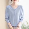 Frühling Herbst V-Ausschnitt Perlenbesatz Stricktop Damen Langarm Alleskönner Pullover