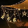 LED Solar Lichterkette - Stern & Mond Vorhang, Outdoor Camping & Feiertags-Feendekor