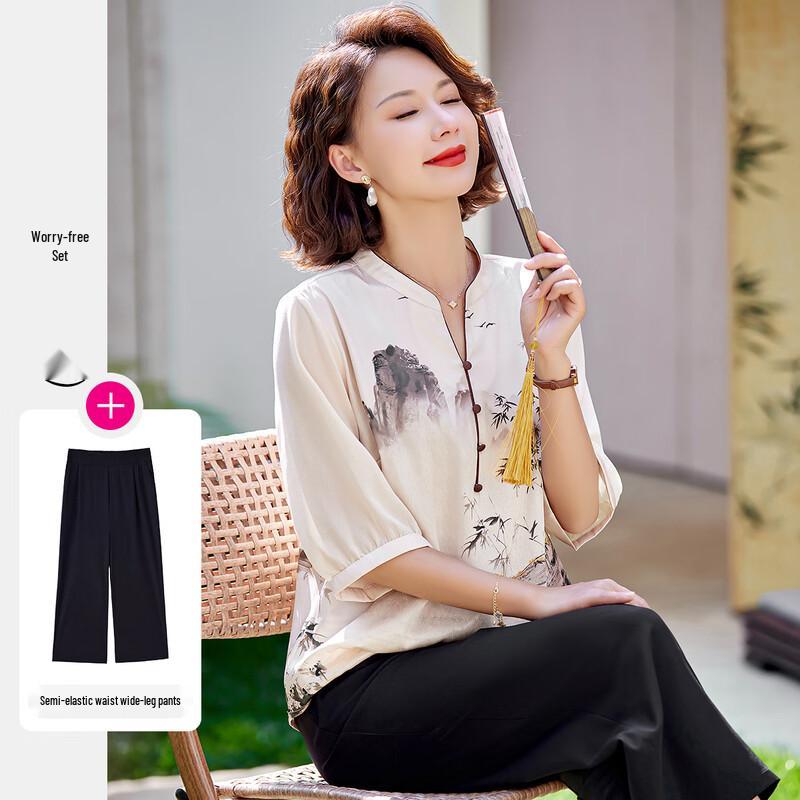 Damen Sommer Top & Hose Set mit floralem Tintenprint