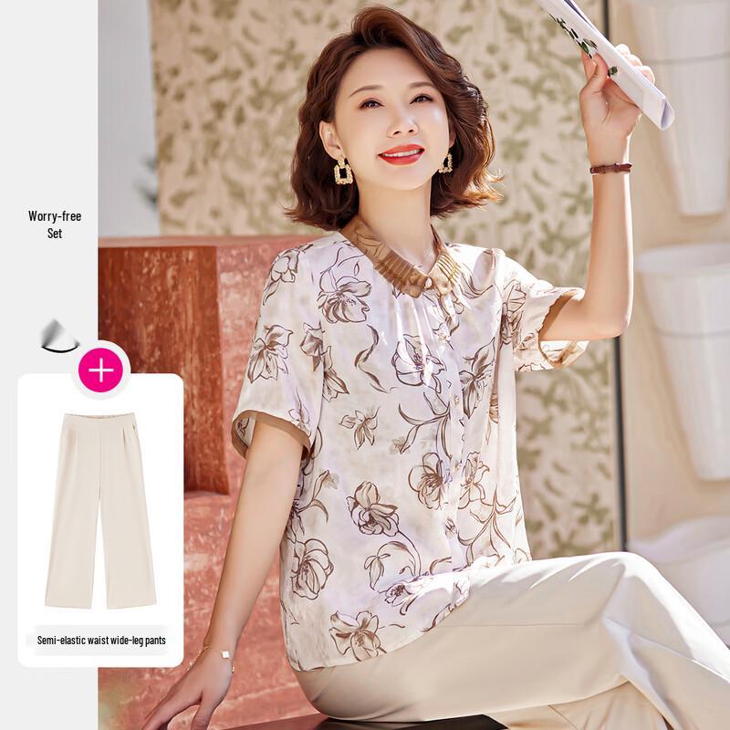 Pasite Women's Summer Printed Shirt & Pants Casual Set