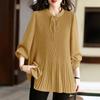 ZANZEA Damen Freizeit V-Ausschnitt Locker Langarm Plissierte Bluse