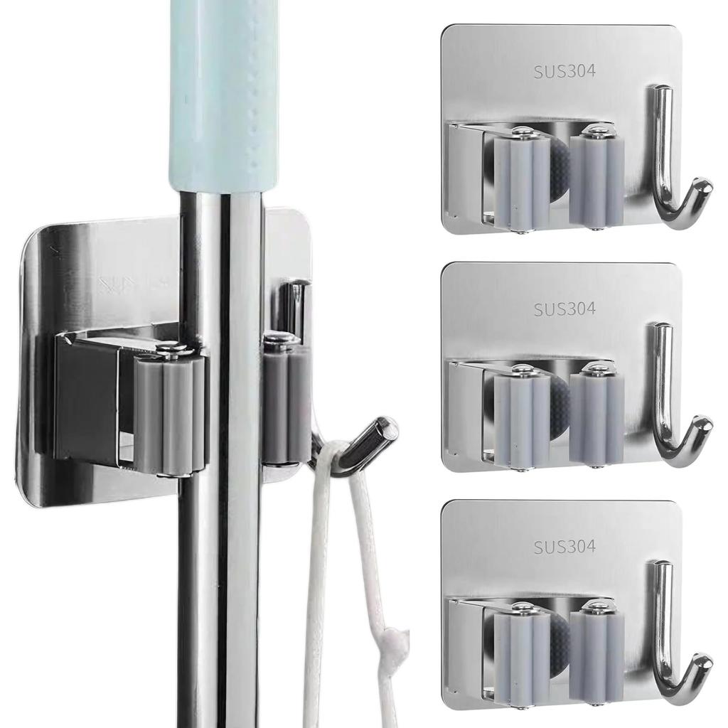 [Kein Bohren erforderlich - Sicher für Mietwohnungen] Die starke Kleberückseite ermöglicht eine einfache Installation ohne Bohrlöcher in der Wand. Kompatibel mit glatten Oberflächen wie Fliesen, Glas und Metall. [Hergestellt aus hochwertigem 304 Edelstahl] Hergestellt aus langlebigem 304 Edelstahl, ist es rostbeständig und langlebig, selbst in nassen und feuchten Bereichen.. Es sieht auch stilvoll aus. [Mit Haken für Vielseitigkeit] Das Hakendesign ermöglicht es Ihnen, nicht nur Mopps und Besen aufzuhängen, sondern auch kleine Gegenstände wie Putzlappen und Reinigungsbürsten. Extrem praktisch. [Rutschfeste Rollen] Die fest zupackenden Rollen halten den Mopp sicher fest und verhindern, dass er abrutscht. [Platzsparendes & Stilvolles Design] Die kompakte Größe von 8 cm Breite x 5,3 cm Tiefe x 6,5 cm Höhe ermöglicht die Installation überall, einschließlich Eingangsbereichen, Badezimmern, Küchen und Garagen. Empfohlen für: Mietwohnungen, die Reinigungsmittel lagern möchten, ohne die Wände zu beschädigen. Auf der Suche nach einer stilvollen, platzsparenden Aufbewahrungslösung für Reinigungswerkzeuge. Möchten Sie nicht nur Wischmopps und Besen, sondern auch andere kleine Gegenstände organisieren?. Spezifikationen: Menge: 3-teiliges Set. Installation: Selbstklebend (kein Bohren erforderlich, doppelseitiges Klebeband). Material: Edelstahl 304, rutschfestes Gummi. Maße: Ca.. B8xT5.3xH6.