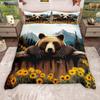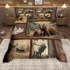 Homewish Rustikales Bauernhaus Lodge Hütte Bettbezug Set, Wildbär Hirsch Bettbezug Set, Waldtier Bettwäsche Set