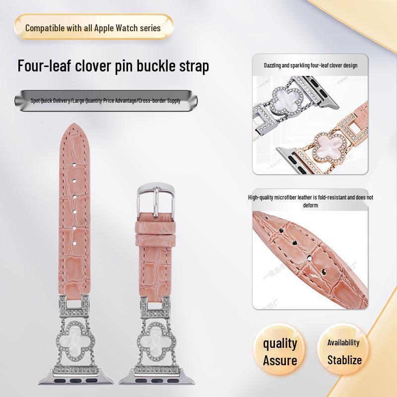 Vierblättriges Kleeblatt Lederarmband für Apple Watch (Kompatibel mit iWatch Serie 5-10) - Damenmode Uhrenarmband