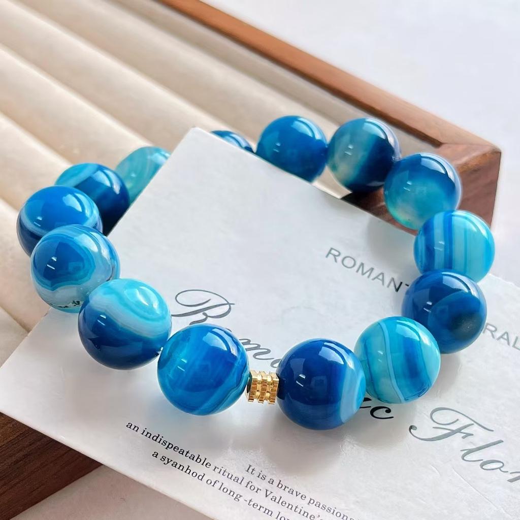 14mm Large Particle Natural Blue Agate Bracelet