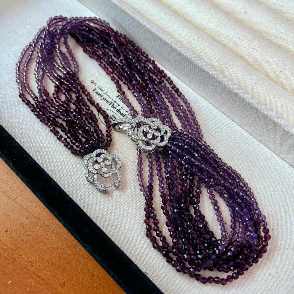 Italienischer Oma-Stil Zehn Schichten Lässige Romantische Retro-Halskette Damen Halskette Nische Künstlicher Amethyst Hals