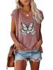 Damen Mode V-Ausschnitt Bedrucktes T-Shirt Sommer Lässig Kurzarm Top