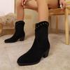 Rivet Pointed Toe British Style High Heel Fashion Boots Women's Winter 2025 New Plus Size Thick Heel Socket Martin Boots