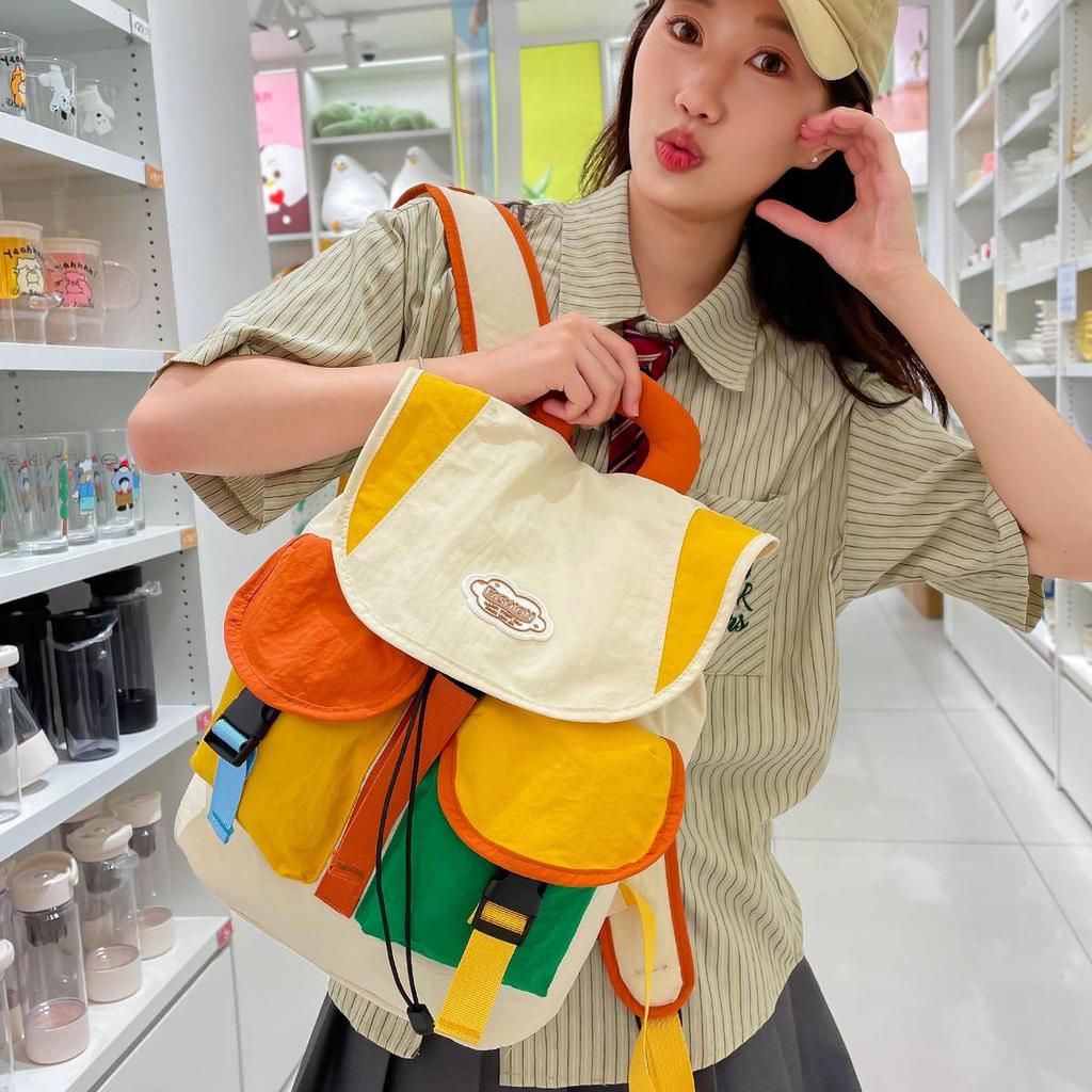Colorblock Rucksack - Damen Doppel-Schultertasche für Studenten, Trendig und Geräumig für Schule und Hochschule