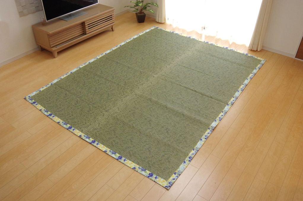 IKEHIKO Igusa Rug, 2-Tatami Size, Cute Floral Pattern, NS Fragrance, Blue, Approx. 191 x 191 cm, Non-Slip Backing #8165820