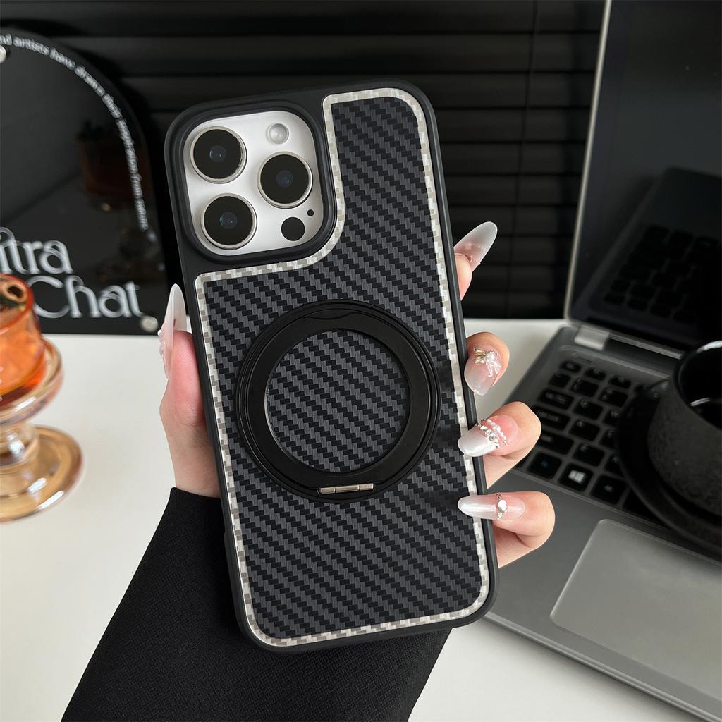 Handyhülle aus Kohlefaser mit magnetischer Saugfunktion für IPhone 16 Promax Schutzhülle Unsichtbare rotierende Halterung