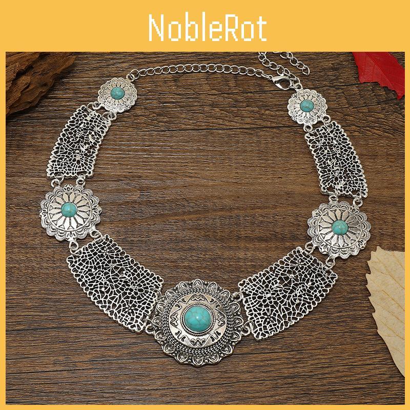 Halskette für Damen im Ethno-Stil mit simulierter Edelstein-Dekoration und hohlem Design