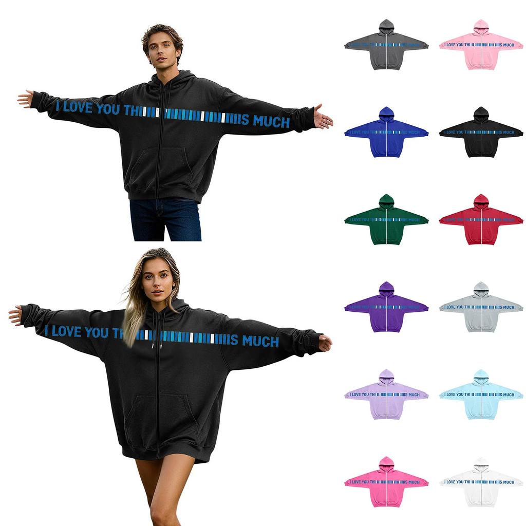 Damen- und Herren-Unisex-Mode, lässiger Langarm-Kapuzenmantel mit Rundhalsausschnitt und Aufdruck