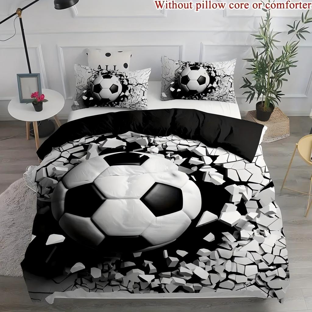 3D Visual Effect Football Impact Printing Bedding Set Sport Football Theme Quilt Cover Set Home Soft Comfortable Duvet Cover Set