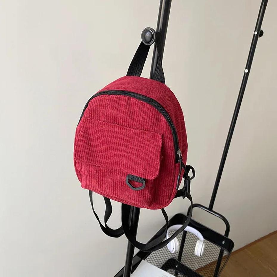 1 Pcs Corduroy Shoulder Ins Mini Backpack For Women's Korean Version High School Student Forest Style Minimalist Retro Backpack