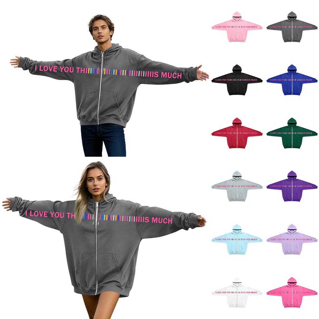 Damen- und Herren-Unisex-Mode, lässiger Langarm-Kapuzenmantel mit Rundhalsausschnitt und Aufdruck