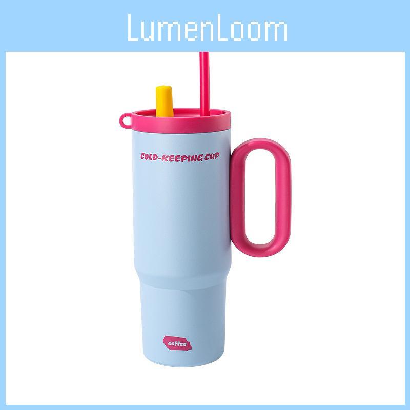 Isolierter Reisebecher, Edelstahl-Thermoskanne, Getränkeflasche mit großem Fassungsvermögen, Autobecher mit Strohhalm, tragbarer Thermobecher, doppelwandige Vakuumflasche, modernes Design-Trinkgeschirr, geschenkfertiger isolierter Becher