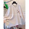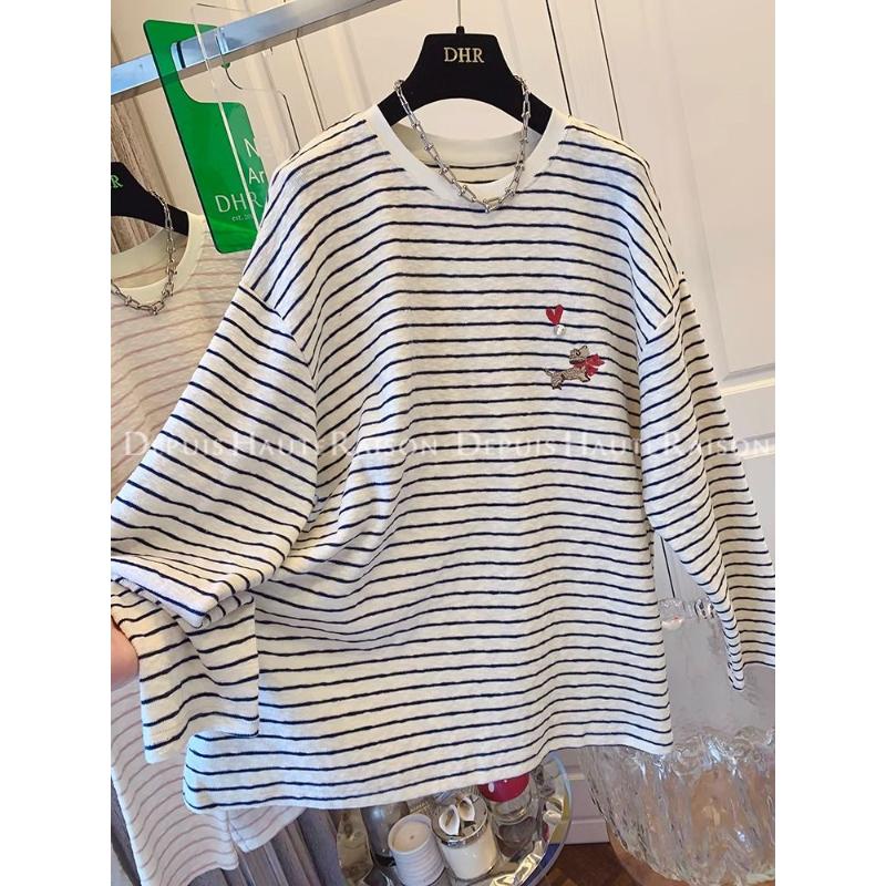 Besticktes Love Puppy Kontrastfarben gestreiftes Langarm-T-Shirt Damen Koreanischer lockerer Unterzieh-Top Frühling
