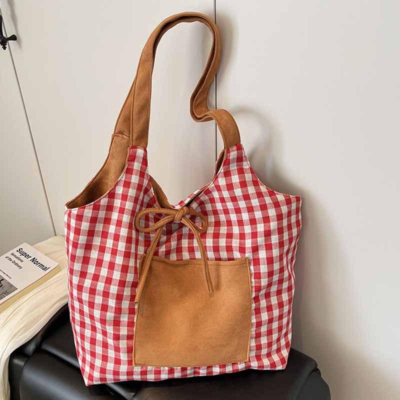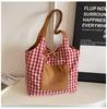 2025 Korean Autumn and Winter New Product Plaid Lazy Style Large Version Shoulder Bag Women's Reversible Trend Tote Bag