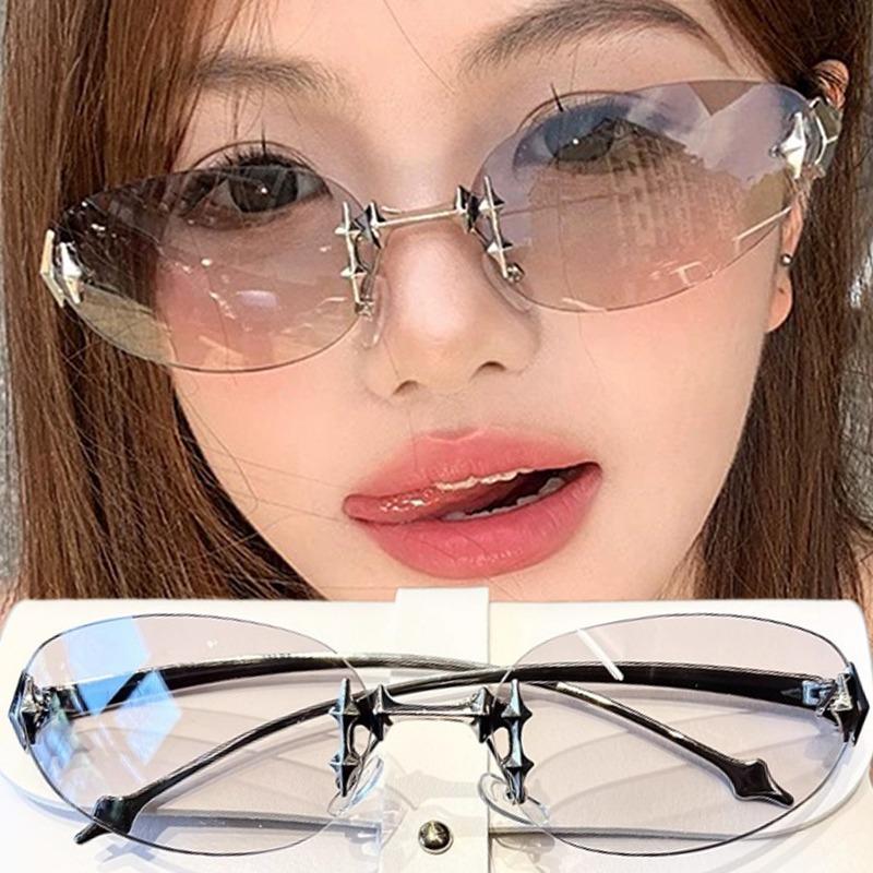 New Frameless Sunglasses Fashionable Women Retro Decoration Eyeglasses Oval High-End Luxury Decoration Design Sun Glasses