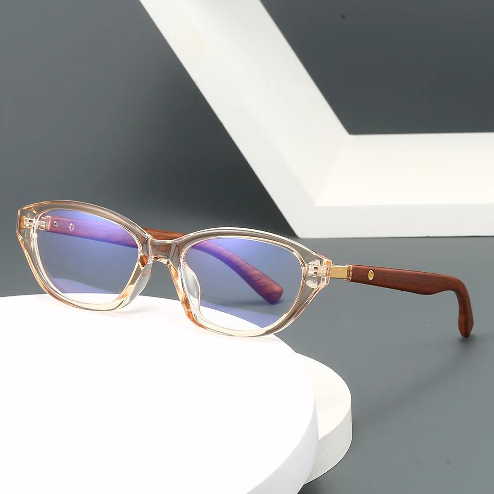 Women'S Imitation Wood Luxury Cat-Eye Reading Glasses Trend High-Definition Comfortable Durable Anti-Blue Eyeglasses 0 To +4.0
