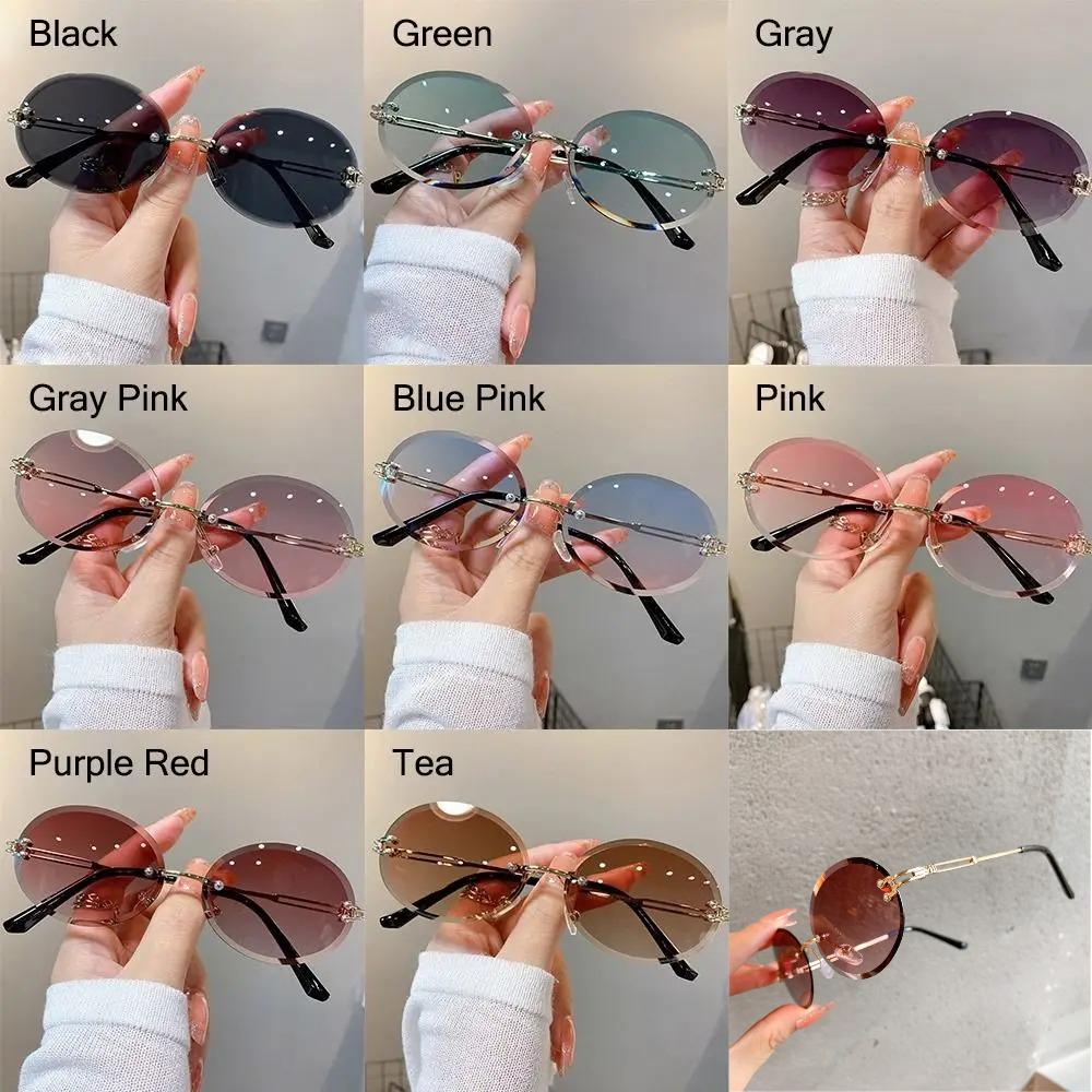 Fashion Rimless Oval Sunglasses For Women Men Retro Gradient Lens Metal Frame Sun Glasses Outdoor Travel Sunglass Shade Eyewear