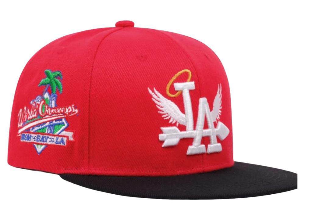 Sproutsy Men's Baseball Cap, Flat Visor, Street Style, Unisex, LA Design (Red + Black)